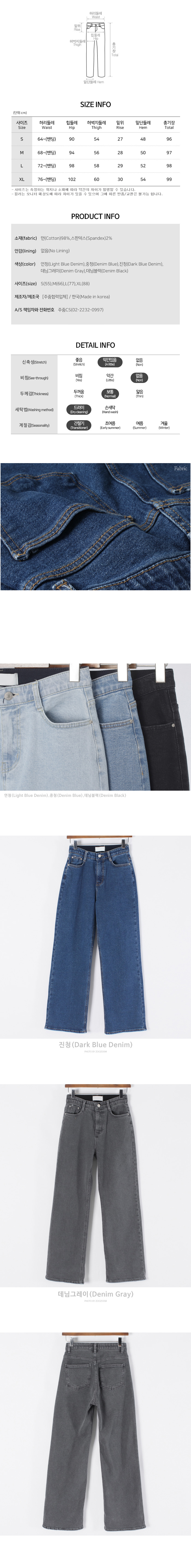 ÁøÃ»(Dark Blue Denim),¿¬Ã»(Light Blue Denim),Áßû(Denim Blue) / S(55)